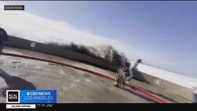 Lauren Pozen reports from Hermosa Beach, just one of many Southern California beaches getting pummeled by high surf on Thursday. Meteorologists expect much of the same is on the way over the weekend as several storms close in on the region.