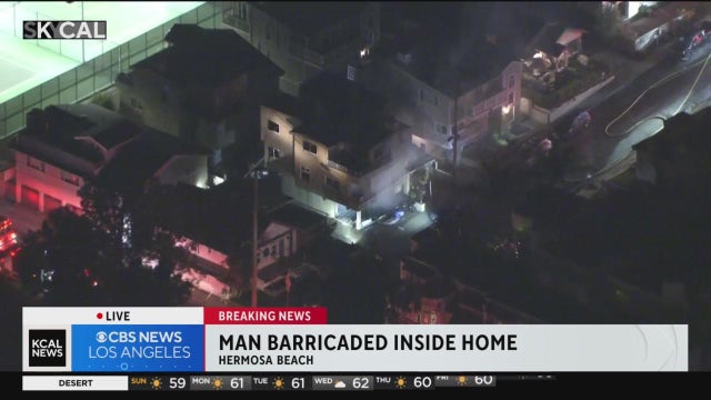 A man has barricaded inside a Hermosa Beach home that was set on fire, according to the Los Angeles County Fire Department.