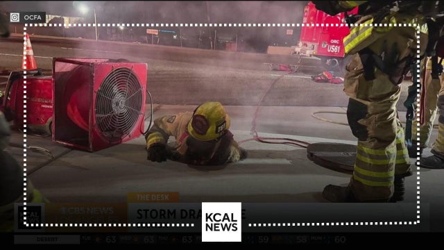 Orange County Fire Authority shared footage of a firefighter getting to flames down in a storm drain
