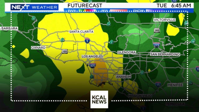 Steady rain continues to fall in SoCal Tuesday morning. A flash flood warning was extended for Los Angeles and Ventura Counties until 10 a.m.