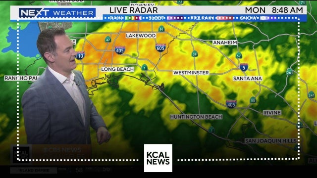 The storm will be hitting the Inland Empire and Orange County on Monday, bringing more intense rainfall for the area. Paul Deanno has the latest timeline for the storm.