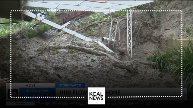 KCAL New reporter Rick Montanez has the latest on the storm in Beverly Crest where several homes were damaged by mud flows in the area.