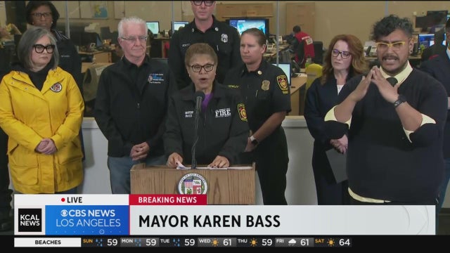 Mayor Karen Bass, joined by other city leaders and first responders, urged Angelenos to stay home and out of the roads, and to take all necessary precautions amid the storm.