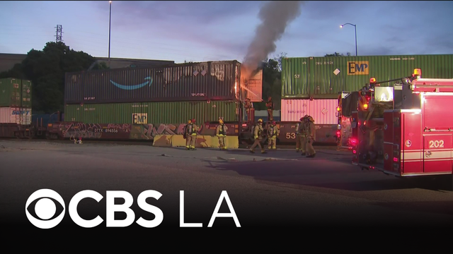 A large cargo container being hauled by a freight train through downtown Los Angeles early Thursday morning somehow caught fire. Mark Liu reports.