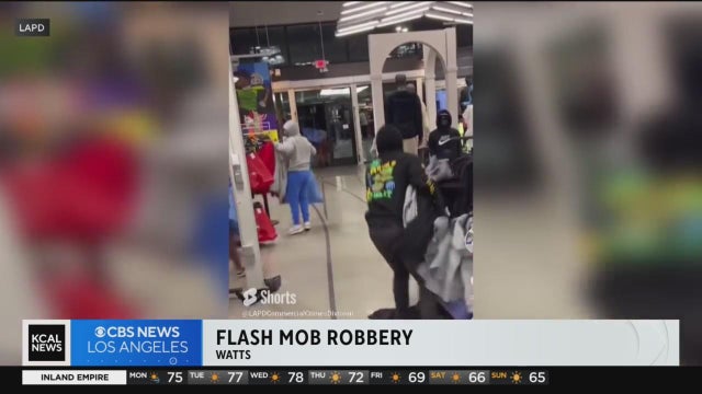 Watts residents stood guard outside a Nike store after a group of 17 suspects ransacked the retailer on Sunday. Laurie Perez reports.