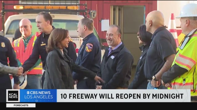 The 10 Freeway will reopen ahead of Monday's commute just over a week after a historic fire led to its closer and sooner than anticipated, said Gov. Gavin Newsom. Kara Finnstrom reports.