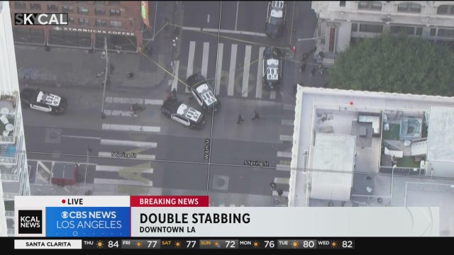 Two people were hospitalized after being stabbed near a Starbucks location in downtown Los Angeles on Thursday. Their conditions are unknown.