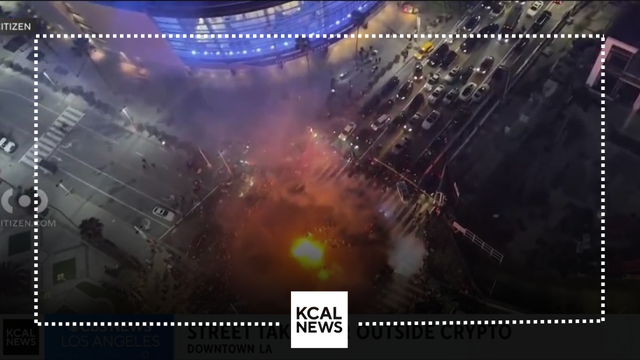 Video from the scene shows fireworks popping over the intersection, where participants performed doughnuts inside of their cars just outside of Crypto.com Arena.