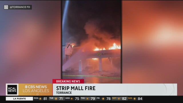 A restaurant and several businesses were damaged after a fire started at a strip mall in Torrance around 2 a.m. on Monday.