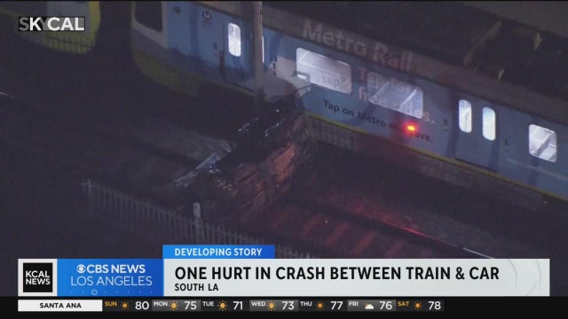 A collision between a Blue Line train and a vehicle in Los Angeles Sunday evening left one person in the car possibly injured.