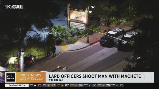 The man was shot after a confrontation with police officers outside a restaurant in Calabasas. He was taken to a local hospital where he died from his injuries.