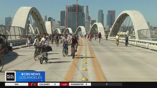 Bicyclists enjoyed the 6th Street Bridge during CicLAvia's return to downtown Los Angeles and a "ring of fire" in the night sky dazzles viewers.