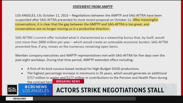 After days worth of negotiation, talks between SAG-AFTRA and Hollywood studios have reportedly hit a snag, with one side reporting that "it is clear the gap between" the two is too great to continue at the time. Mike Rogers reports.