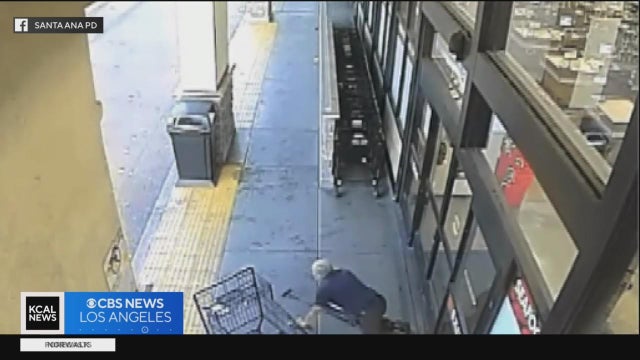 Authorities are seeking help identifying a man who was caught on camera as he charged a homeless person in Santa Ana, hitting them from behind with a shopping cart.