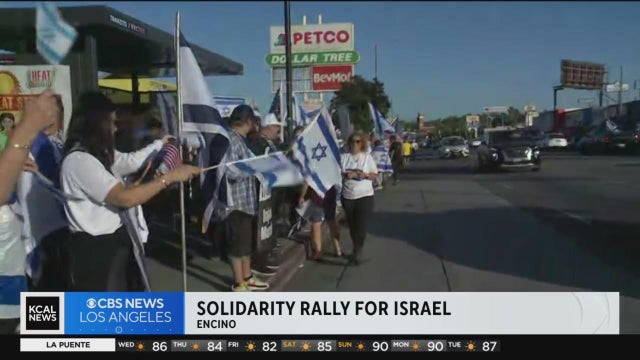 Laurie Perez reports from the scene of a large rally in Encino, where hundreds of supporters lined streets to voice their support for the people of Israel.