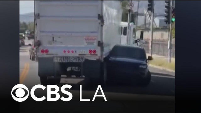 Wild video shows the moments when a semi truck and an SUV appeared to be in the midst of a road-rage incident in Pacoima. Nicole Comstock reports.