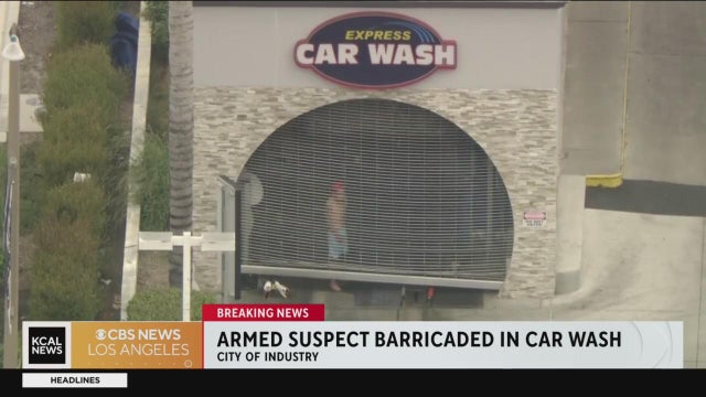 Sheriff negotiators work to talk a barricaded suspect out of a car wash