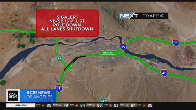 CHP has issued a SigAlert for both northbound and southbound lanes of I-15 in Barstow due to downed power lines, which were reportedly caused by a lightning strike.