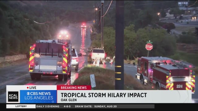 As rain continues to fall as a result of Tropical Storm Hilary, Los Angeles River waters are raging in the canal behind the CBS Broadcast Center, swelling to a point that many have never seen before.