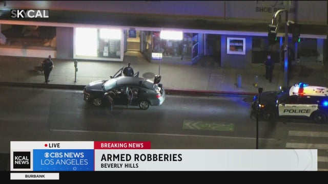 Beverly Hills police arrested four armed robbery suspects fleeing along Santa Monica Boulevard.