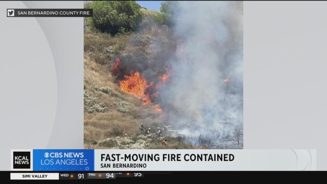 A brush fire burned between five and seven acres in San Bernardino early Wednesday afternoon before firefighters were able to stop the forward motion of the flames.