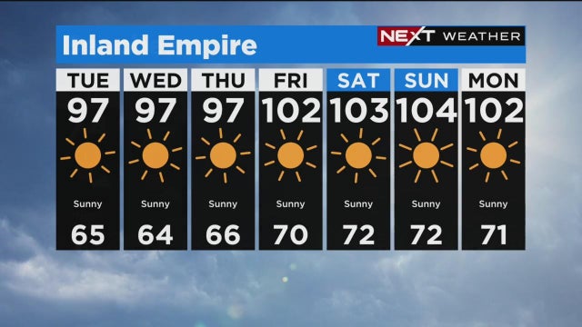 Increasing heat today with elevated fire danger and heat advisories in effect. Marine layer lingers along the beaches. L.A. and Orange County see mid-80s, valleys and inland reach upper 90s, hotter in the deserts. Triple-digit temperatures by the weekend.