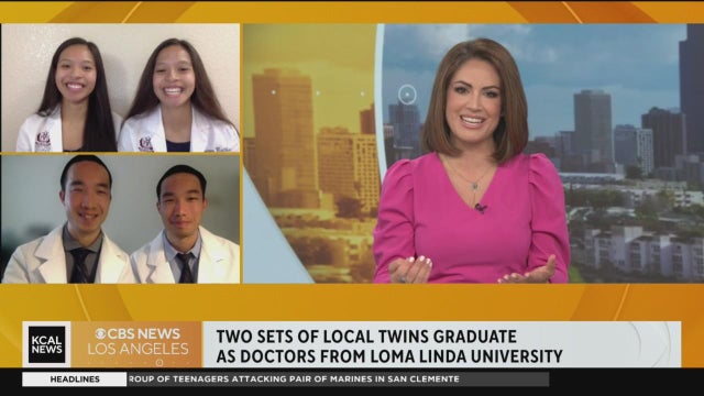 Talk about seeing double -- or even quadruple! Two sets of twins graduated on Sunday with doctorates from Loma Linda University. Lauren and Karen Bathan have medical degrees, and Christopher and Luis Chan have doctor of pharmacy degrees. Both pairs of twins joined KCAL News Monday morning.