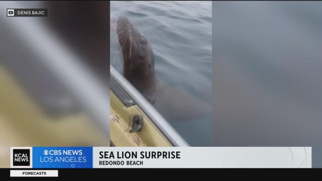 A local fisherman was out on a kayak when a sea lion tried to jump in and grab some of his fish.