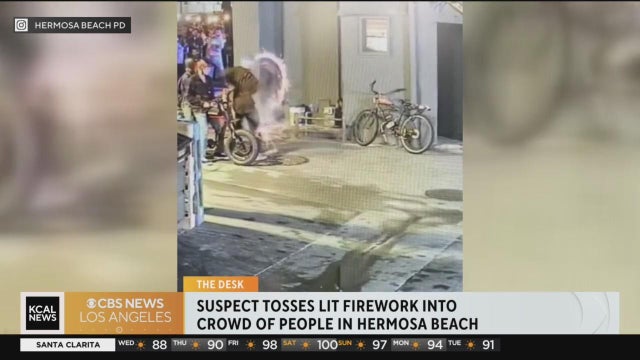 Hermosa Beach police are looking for a suspect who lit a firework and threw it into a crowd of people at a silent disco.