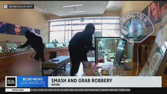 Michele Gile reports from Irvine, where police are searching for a trio of robbers armed with hammers who targeted a jewelry store on Monday, making off with nearly $1 million in stolen goods.