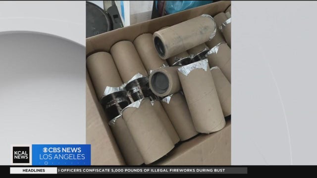 San Bernardino officers evacuated nearly fifty homes after they seized 5,000 pounds of illegal fireworks from one of their neighbors. Tom Wait reports.