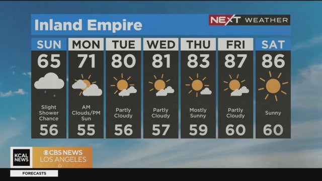 Conditions will be dry over the weekend with pleasant temperatures overall. Parts of the Inland Empire might have some lingering showers on Friday morning.