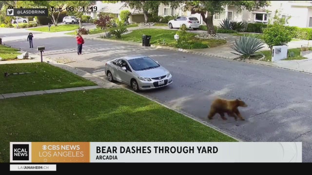 A landscaping crew was surprised as a bear ran through a yard in Arcadia. Residents say they have seen an increase in bears since the Bobcat wildfire in 2020.