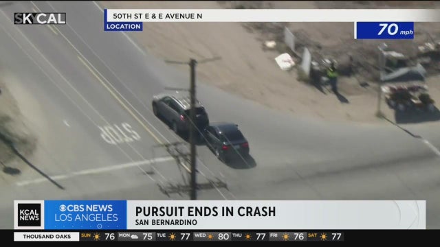 A high speed pursuit with suspects who failed to pull over for police when they attempted a traffic stop in San Bernardino came to a sudden end when the suspect lost control of their vehicle and slammed into the rear end of another car at around 4:30 p.m. Sunday.