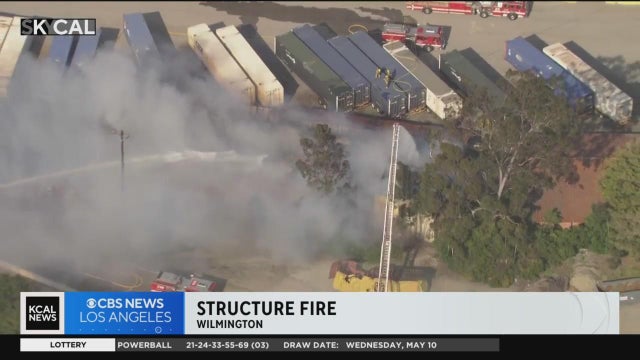 Firefighters are in the 2400 block of East Sepulveda Boulevard in Wilmington, where a single-story commercial structure that has previously burned has heavy flames showing, says the LAFD's Nicholas Prange. A defensive fight is underway with the blaze battled from outside to protect surrounding structures.