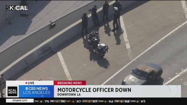 An LAPD motorcycle officer was struck by a black Tesla in what investigators are calling a "possible hit-and-run" on the I-10 near downtown Los Angeles.