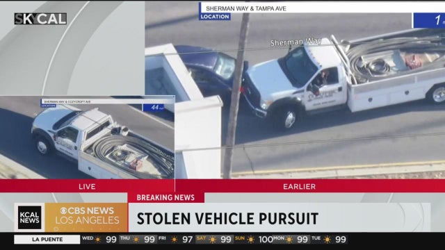 Police pursue a stolen work truck in Northridge