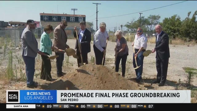 The Port of Los Angeles broke ground Tuesday on the final phase of an $85 million West Harbor waterfront park, restaurant and event center under construction in San Pedro