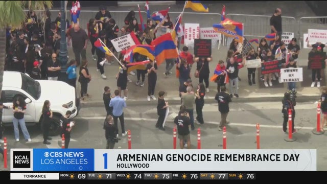 Protestors gathered outside the Turkish Consulate in Beverly Hills mid-day Monday after an earlier rally in Little Armenia. Jeff Nguyen reports.