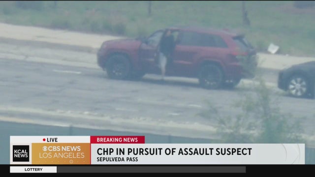 An assault suspect was taken into custody after a pursuit ended in Sepulveda Pass on Monday.