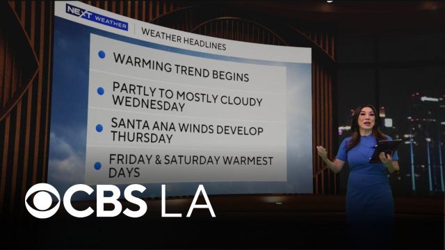Southern California will begin to gradually warm up as the week continues. Wednesday will be partly to mostly cloudy and Santa Ana winds will develop on Thursday.