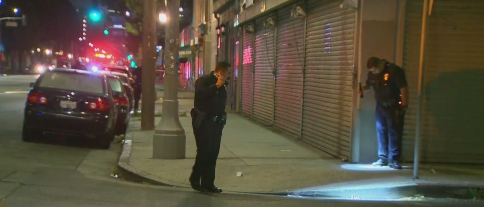 The gunman, described as a Hispanic male, was last seen running away. He was wearing a white hooded sweatshirt.