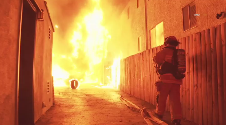 Firefighters received a call at 10:32 p.m. about a fire at an apartment complex at 4721 N. Kester Ave. When they arrived, they extinguished multiple vehicles inside a carport, according to LAFD.