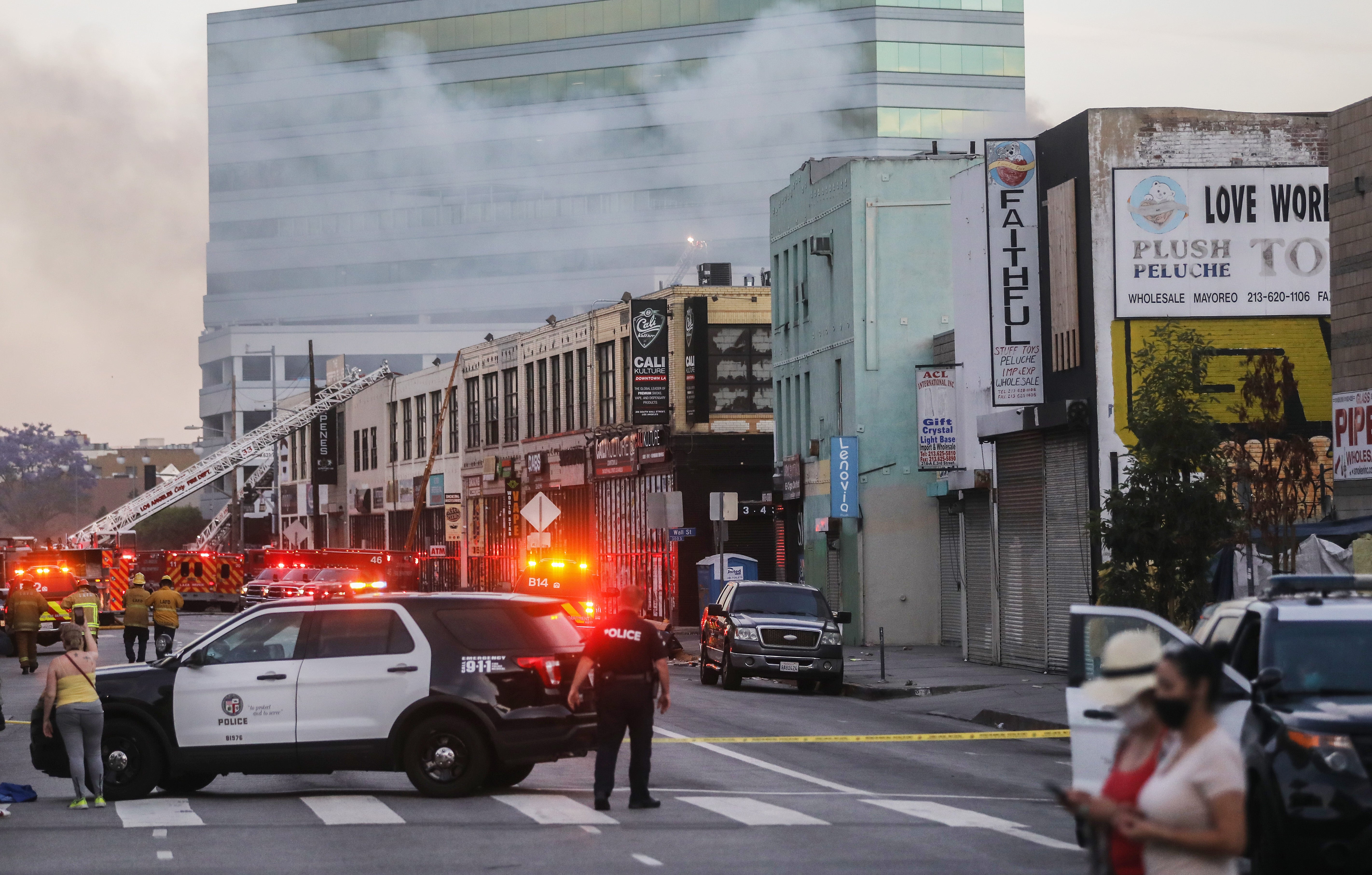 The explosion occurred as L.A. city firefighters were battling flames at the building, which housed a butane honey oil supplier called Smoke Tokes, along with two other marijuana-related businesses, Green Buddha and Bio Hazard.