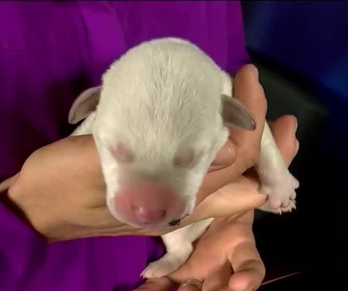 A veterinarian said the pup is under a week old and suffered some burns in the fire.