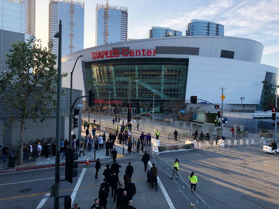 With 90 minutes to go before the Celebration of Life ceremony, the security team at L.A. Live had set up fencing to prepare for the 20,000 people who will gather at 10 a.m. Monday at Staples Center to honor Kobe and Gianna Bryant, as well as the seven other victims of the Jan. 26 helicopter crash.