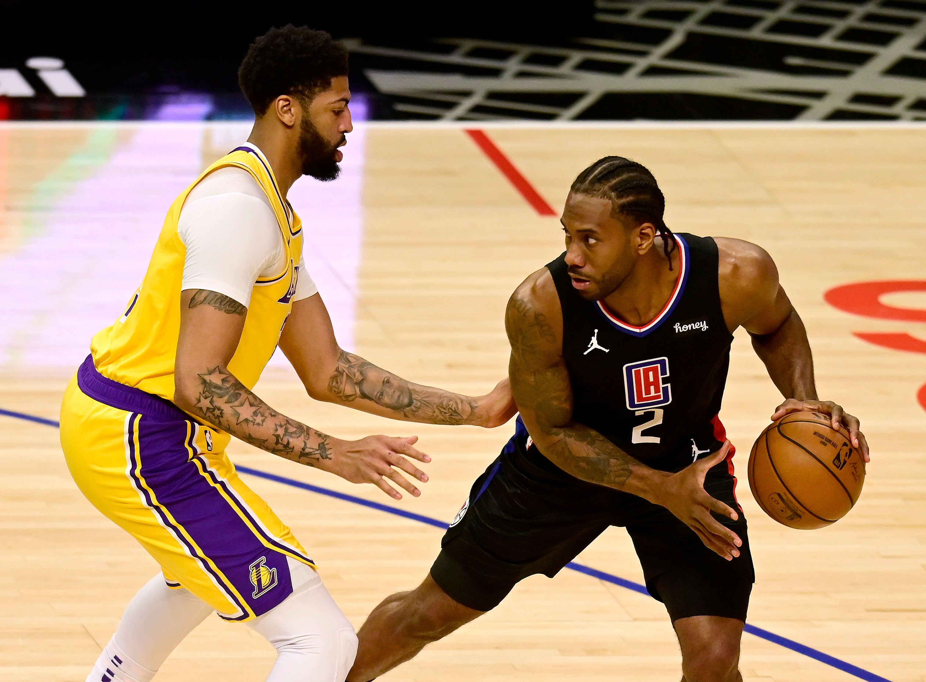 The Clippers shot 63% in the first half, when they led by 24 points. The Lakers' only lead came when Davis scored the game's first basket.