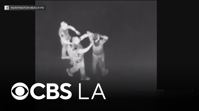 A Huntington Beach police chase ended up in the ocean after the suspect bailed from the car and attempted to swim away from pursuing police on Sunday night.