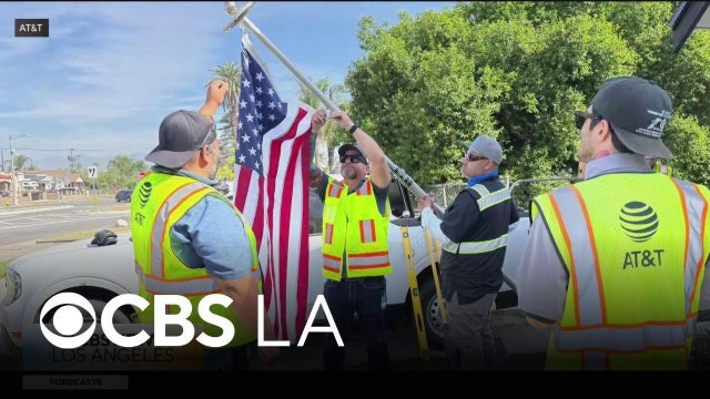Tani Robinson flew her flag on a flagpole in remembrance of her late husband. When it broke, AT&T crew members helped her fix the flagpole in a random act of kindness.