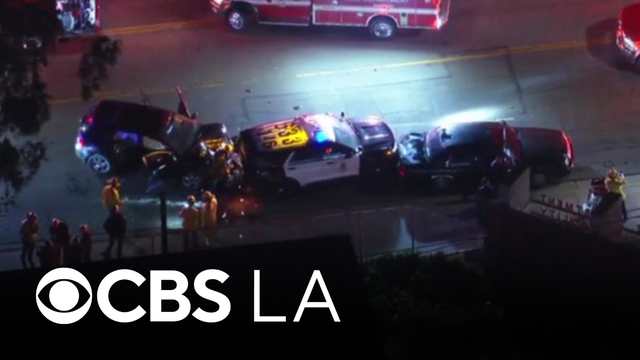 A group of smash-and-grab robbers purposefully crashed an SUV into an Anaheim jewelry store before crashing their getaway cars during a police pursuit on Friday afternoon.